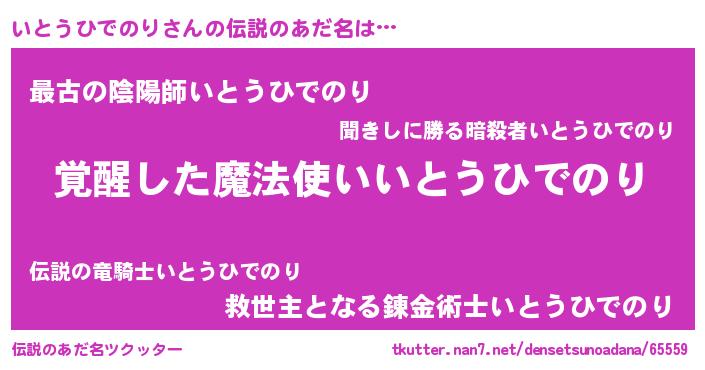| 男性向けラノベタイトル風あだ名 | 『いとうひでのり~年齢イコール彼女いない歴の魔法使い~』 |