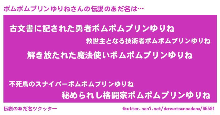 | 欧米人風あだ名 | 『ダレノガレポムポムプリンゆりね』 |