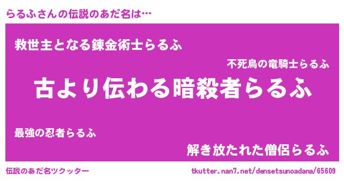 | 男性向けラノベタイトル風あだ名 | 『らるふという概念が存在しない退屈な世界 』 |