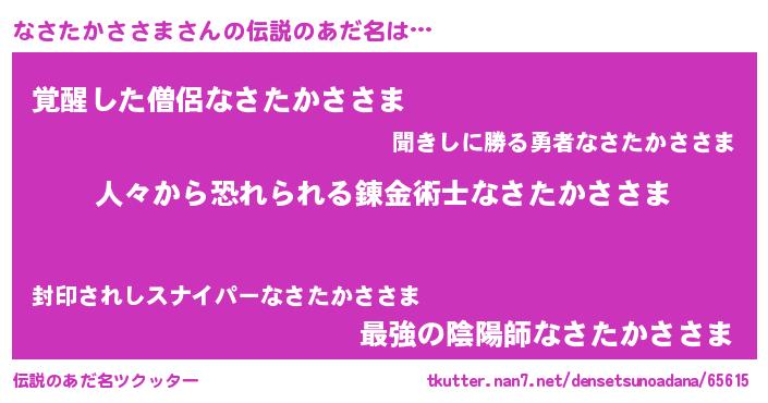| 欧米人風あだ名 | 『ダニエルなさたかささま』 |