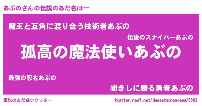 | 意味不明あだ名 | 『自称あぶの』『とにかく怪しいあぶの』 |