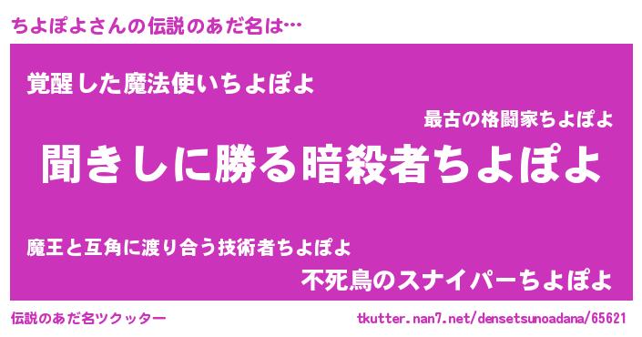| ヒーロー風カッコイイあだ名 | 『ウルトラ戦士チヨポヨ』『ネオチヨポヨ』 |
