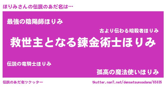 | ヒーロー風カッコイイあだ名 | 『慈愛の使者ほりみ』『天弓騎士ホリ』 |