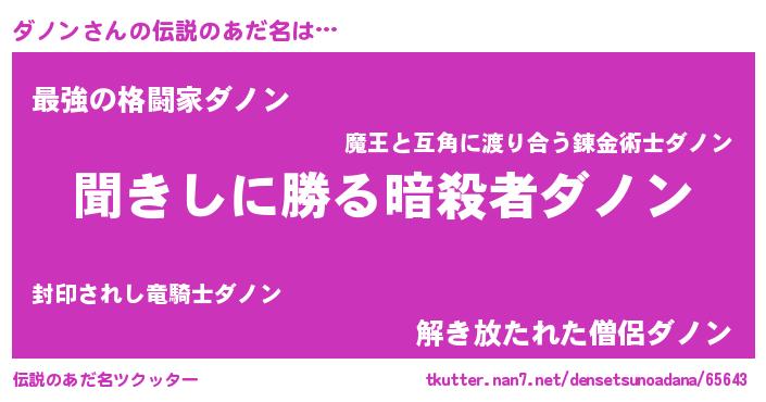 | 男性向けラノベタイトル風あだ名 | 『ダノンという概念が存在しない退屈な世界 』 |