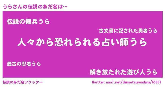 | 男性向けラノベタイトル風あだ名 | 『緋弾のウラ』『魔弾の王とうら』 |