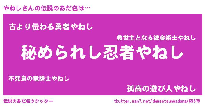 | ファンタジー風あだ名 | 『ゼヤネトゥ』『エターナルヤネシー』 |