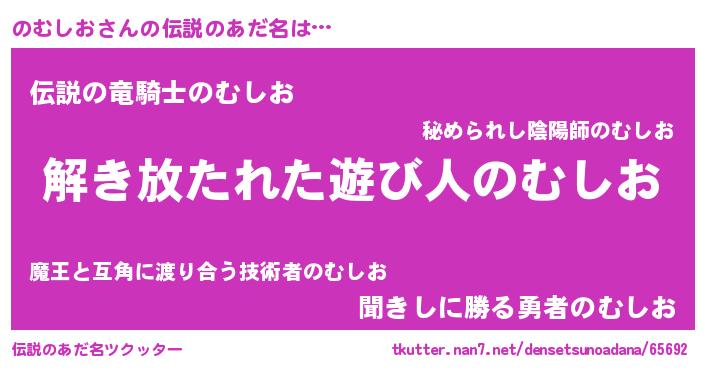 | 男性向けラノベタイトル風あだ名 | 『のむしおの嫁は女の子じゃないと思った?』 |