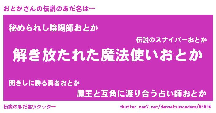 | ヒーロー風カッコイイあだ名 | 『魔戒騎士オト』『最強戦士オトカ』 |
