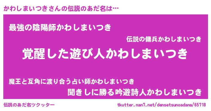 | 胡散臭い通販商品みたいなあだ名 | 『あなたにだけ特別に提供する世界で10本だけ現存している希少なブランデー…その名も「かわしまいつき」』 |