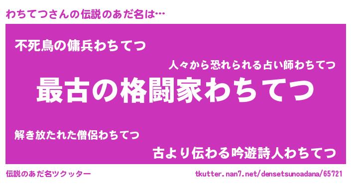 | ヒーロー風カッコイイあだ名 | 『ウルトラわちてつマン』『ネオワチテツ』 |