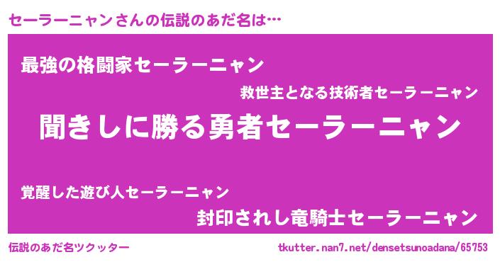 | 意味不明あだ名 | 『永久保存セーラーニャン』 |