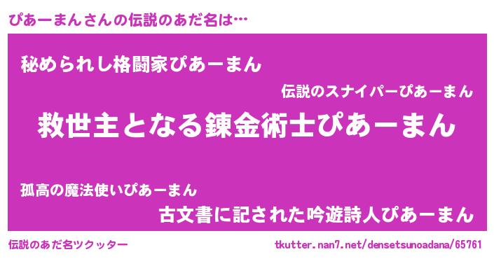 | ヒーロー風カッコイイあだ名 | 『天空の使者ぴあーまん』『仮面ピアダー』 |