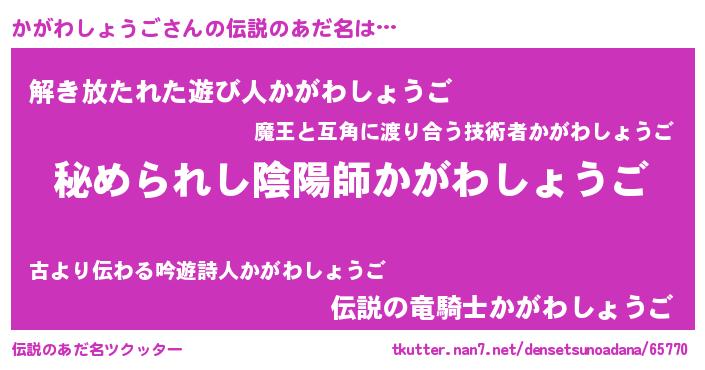 | 肩書あだ名 | 『かがわしょうご上級大将』 |