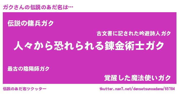 | 男性向けラノベタイトル風あだ名 | 『おまえをオタクにしてやるから、俺をガクにしてくれ! 』 |
