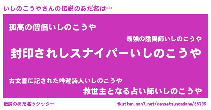 | ヒーロー風カッコイイあだ名 | 『スーパーイシノコウヤ』『炎刃騎士イシ』 |