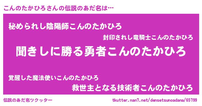| 意味不明あだ名 | 『永久保存こんのたかひろ』 |