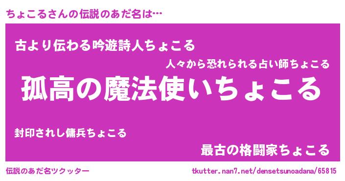 | 意味不明あだ名 | 『とにかく怪しいちょこる』 |