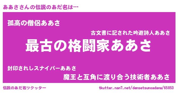 | ヒーロー風カッコイイあだ名 | 『ウルトラああさマン』『黄金騎士アア』 |