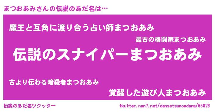 | 男性向けラノベタイトル風あだ名 | 『マツオアミスレイヤー』 |