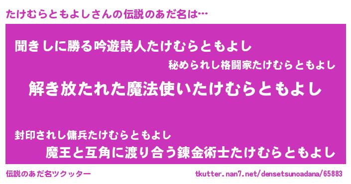 | ヘコむあだ名 | 『たけを』『たけむらともよし(小並感)』 |