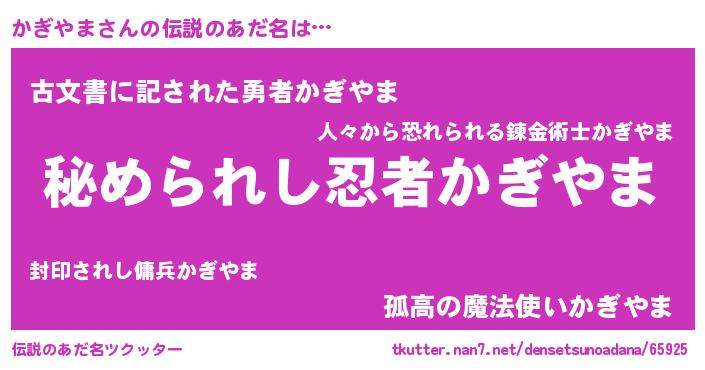 | ヒーロー風カッコイイあだ名 | 『仮面カギダー』『ウルトラかぎやまマン』 |