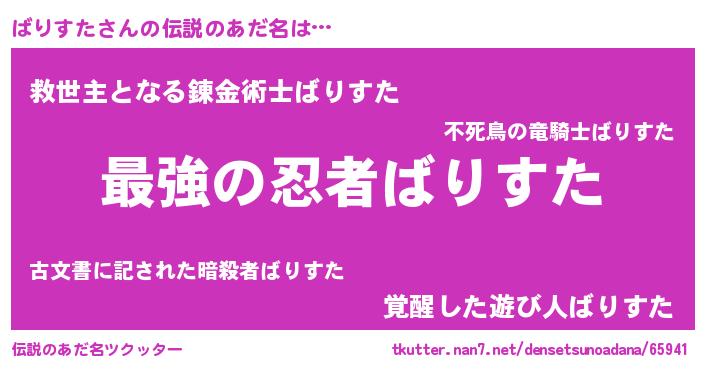 | 男性向けラノベタイトル風あだ名 | 『ばりすたに滅ぼされるだけの簡単なお仕事です』 |