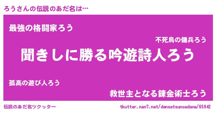 | ヒーロー風カッコイイあだ名 | 『ネオロウ』『ウルトラろうマン』 |