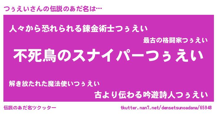 | 男性向けラノベタイトル風あだ名 | 『つぅえいの憂鬱』『緋弾のツゥエイ』 |