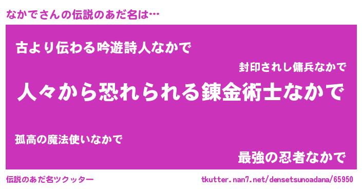 | ヒーロー風カッコイイあだ名 | 『正義の使者なかで』『ネオナカデ』 |