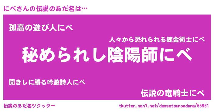 | 意味不明あだ名 | 『にべフォーエバー』『自称にべ』 |