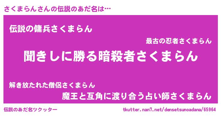 | 男性向けラノベタイトル風あだ名 | 『さくまらんという概念が存在しない退屈な世界 』 |