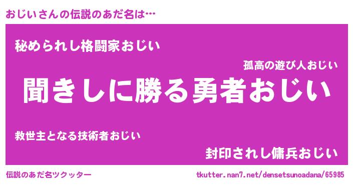 | 男性向けラノベタイトル風あだ名 | 『おじいという概念が存在しない退屈な世界 』 |