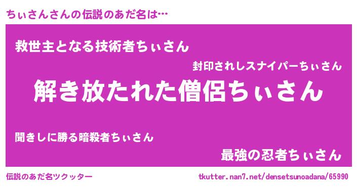 | ヒーロー風カッコイイあだ名 | 『銀牙騎士チィ』『最強戦士チィサン』 |