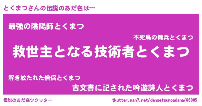 | ヒーロー風カッコイイあだ名 | 『天空の使者とくまつ』『仮面トクダー』 |