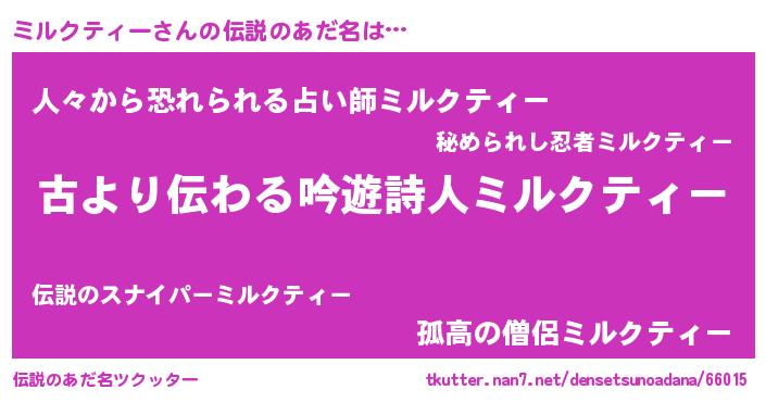 | ヒーロー風カッコイイあだ名 | 『ネオミルクティー』『仮面ミルダー』 |
