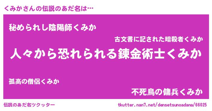 | ヒーロー風カッコイイあだ名 | 『超時空戦士クミカ』『友情の使者くみか』 |