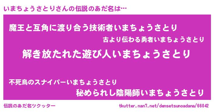 | ポケモン風あだ名 | 『ヒイマチョウサトリ』『イマセウス』 |