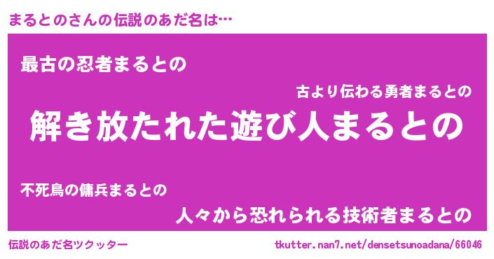 | 意味不明あだ名 | 『住所不定無職まるとの(98歳)』 |