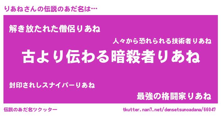 | ヘコむあだ名 | 『りあね(笑)』『りあっ子』『牛乳』 |