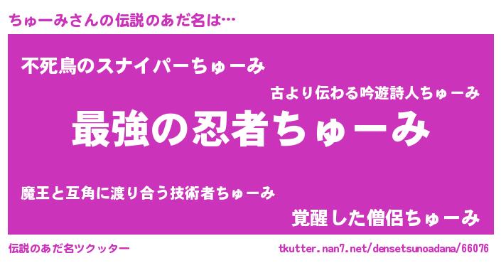 | 意味不明あだ名 | 『ちゅーみフォーエバー』 |