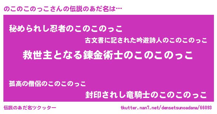 | 男性向けラノベタイトル風あだ名 | 『ノーゲーム・ノーノコノコノッコ』 |