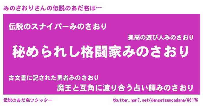 | 意味不明あだ名 | 『住所不定無職みのさおり(7歳)』 |