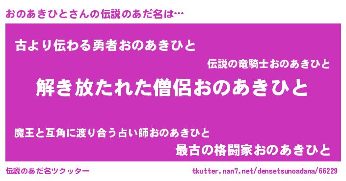 | ヘコむあだ名 | 『おのっ子』『おのあきひと(苦笑)』 |