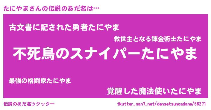 | 胡散臭い通販商品みたいなあだ名 | 『モテモテ間違いなし霊験あらたかなお札…その名も「たにやま」』 |