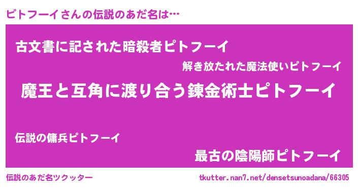 | 意味不明あだ名 | 『たけのこ科ピトフーイ属』 |