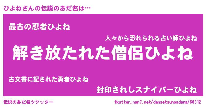 | 意味不明あだ名 | 『自称ひよね』『とにかく怪しいひよね』 |