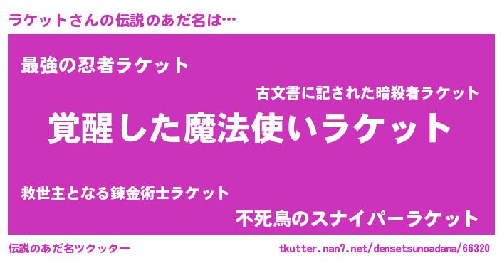 | ヒーロー風カッコイイあだ名 | 『最強戦士ラケット』『天弓騎士ラケ』 |