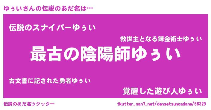 | 男性向けラノベタイトル風あだ名 | 『転生したらゆぅいだった件』 |