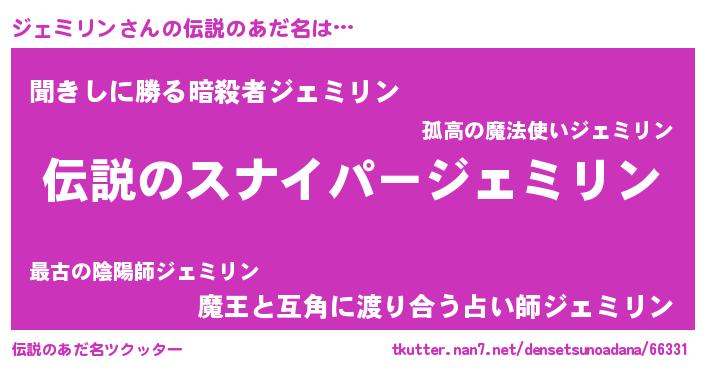 | ヒーロー風カッコイイあだ名 | 『スーパージェミリン』『ネオジェミリン』 |