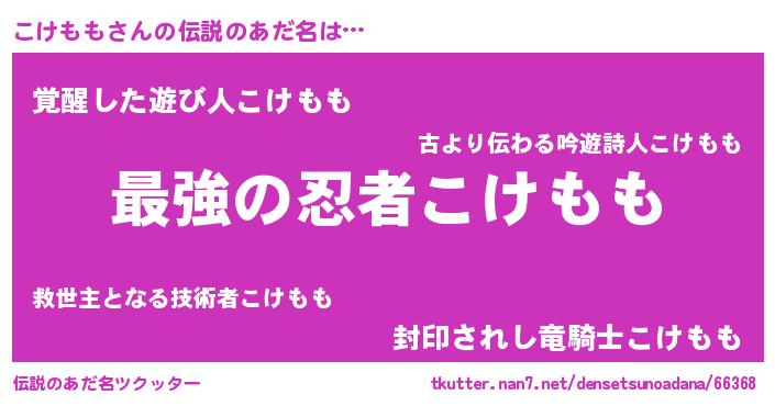 | ヒーロー風カッコイイあだ名 | 『ウルトラこけももマン』『天弓騎士コケ』 |